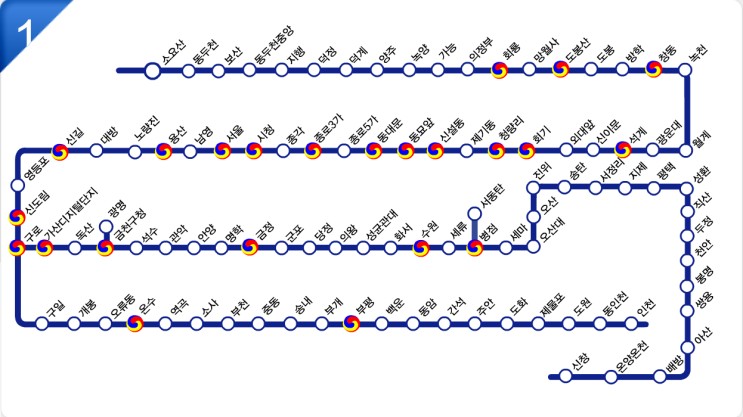 🚇 서울 지하철 1호선 노선도 크게 보기